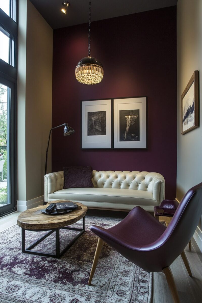 An accent wall might seem like a simple solution, but when done in burgundy, it creates an instant transformation that defines your entire living space.