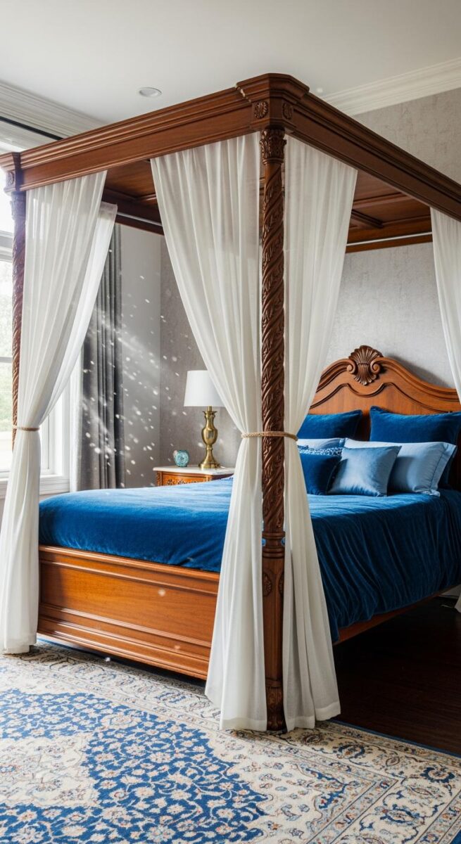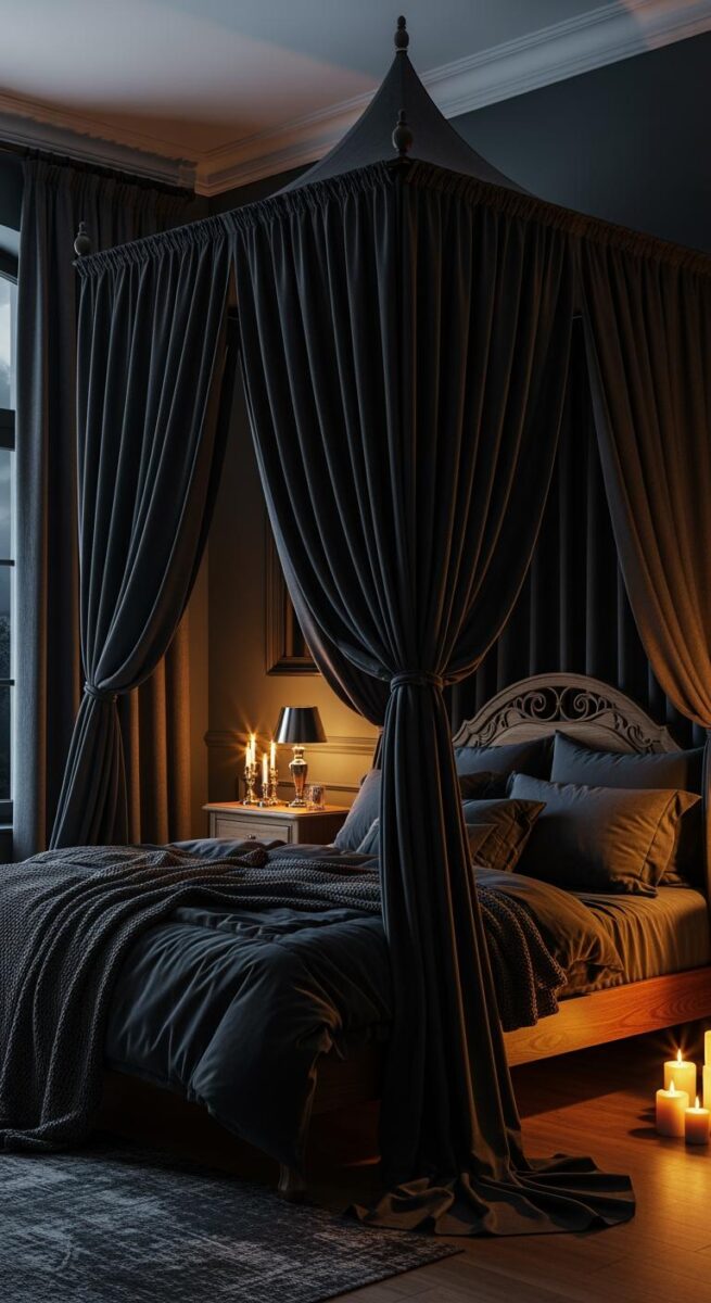 If you’re into moodier spaces, a dark canopy can be absolutely stunning.
