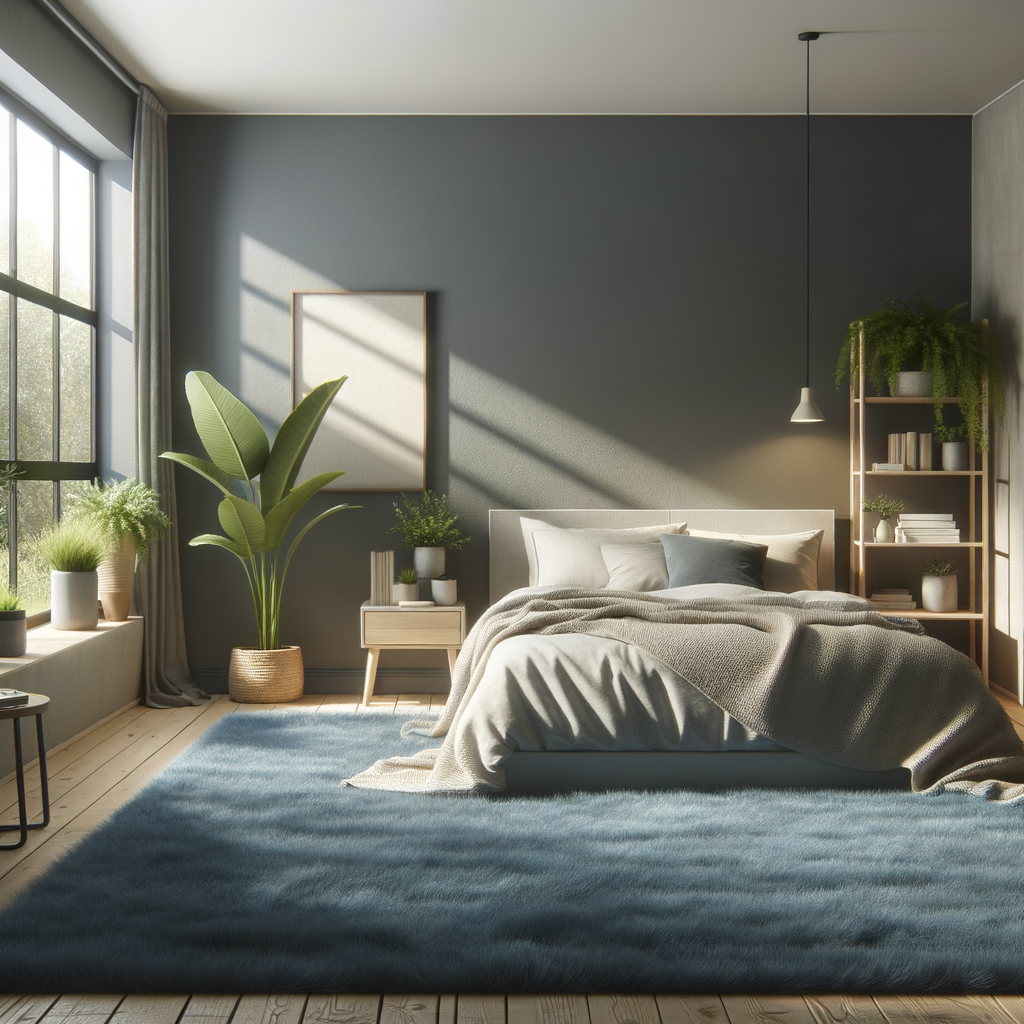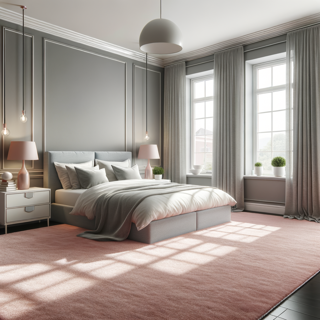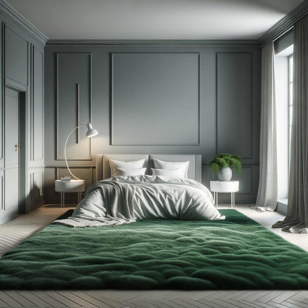 In a contemporary bedroom, pair a soft gray plush carpet with linen sheets and polished nightstands.