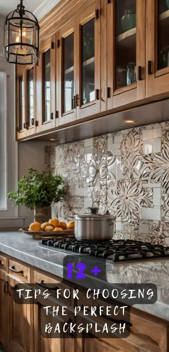 Match the backsplash shape and pattern to the lines, textures, and accents present in your cabinetry.