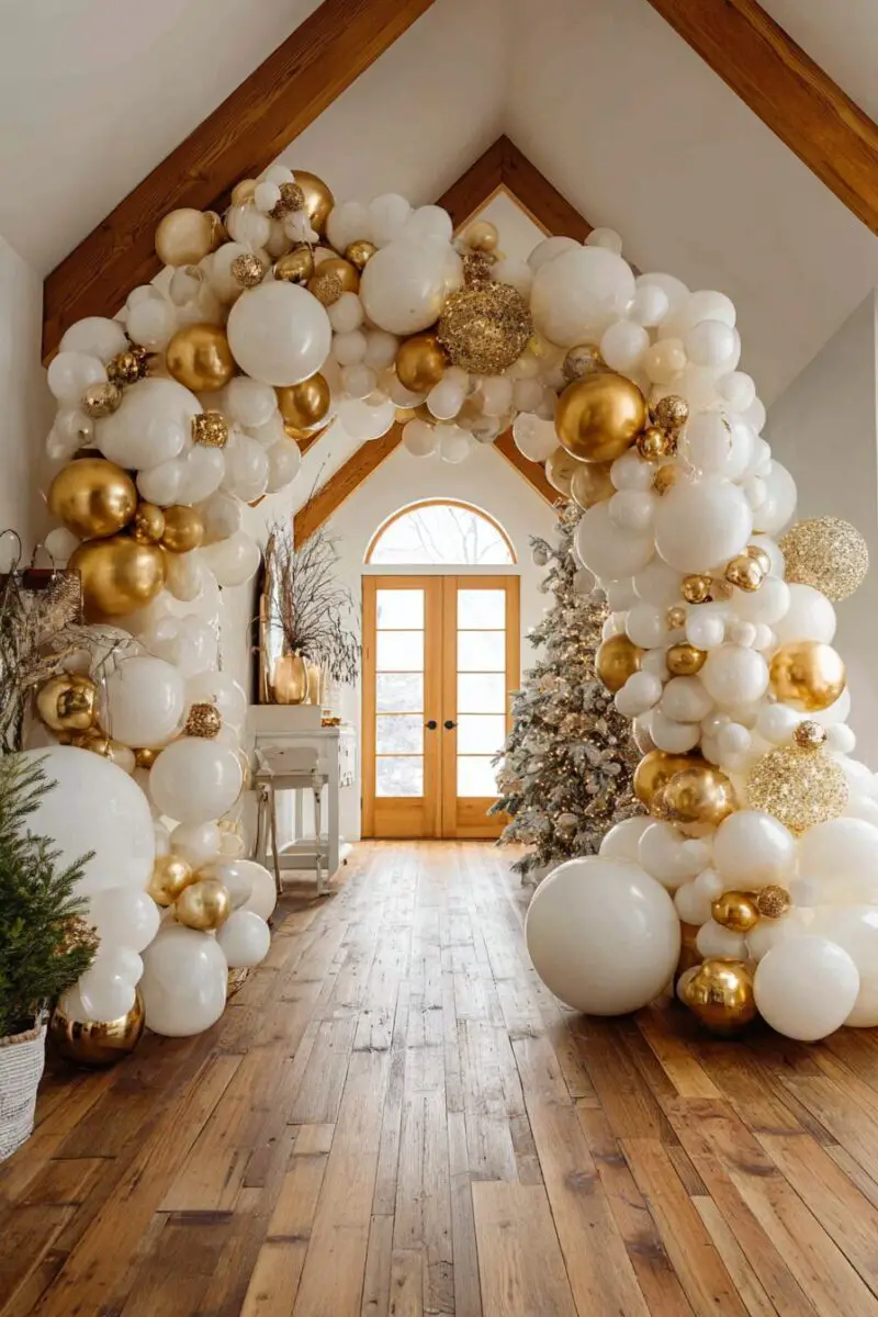 11+ Velvet Christmas Tree InspirationsFloating Balloon Archway in Festive Metallics