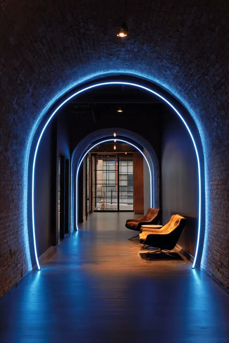 Add programmable smart neon rope that can change colors, pulse, or fade for dynamic lighting effects.