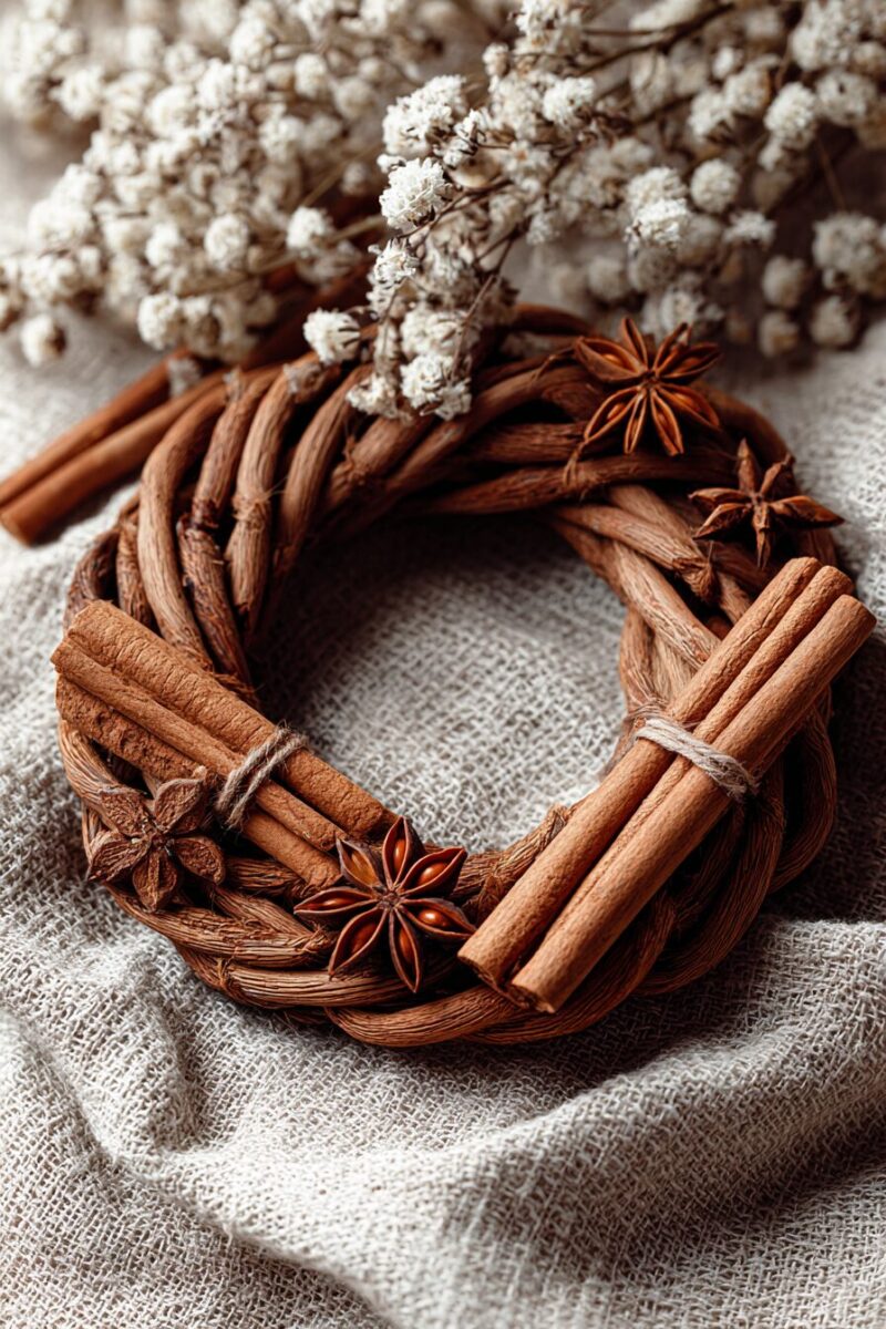 A cinnamon stick wreath looks elegant and fills your home with a sweet, spicy aroma that instantly feels festive.