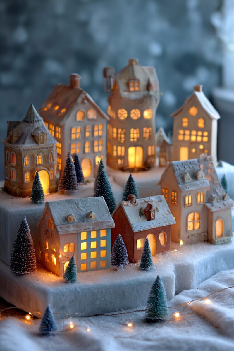 There’s something so nostalgic about a tiny Christmas village glowing softly on a shelf or windowsill.