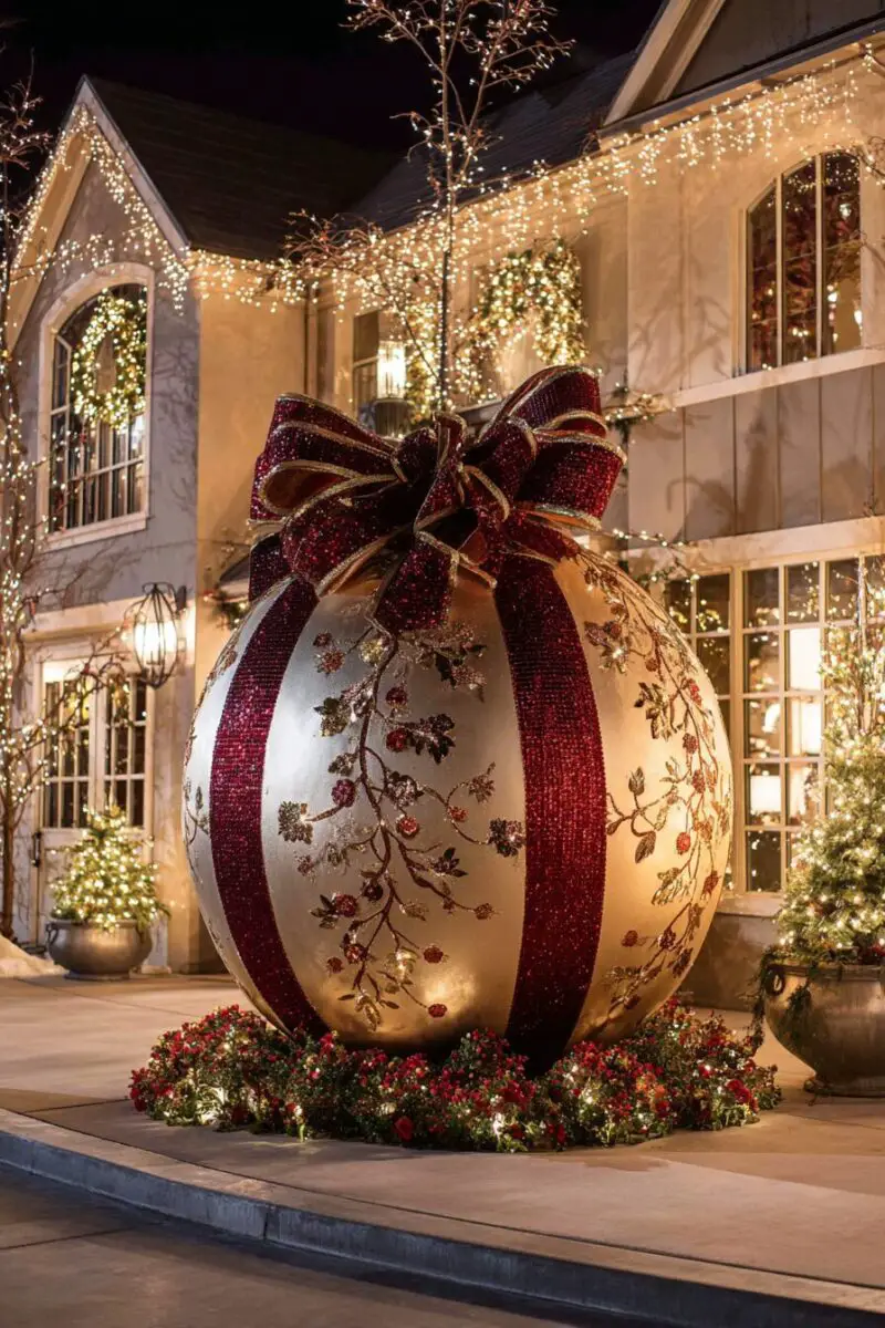Giant ornaments scattered across your lawn create an immediate wow factor that transforms your yard into a life-sized Christmas tree.