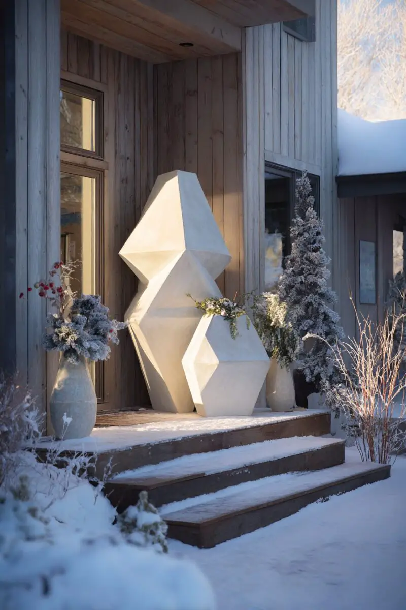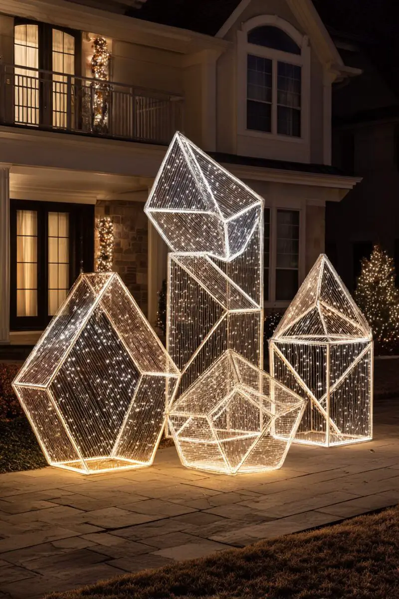 Angular light sculptures bring contemporary art gallery aesthetics to your outdoor Christmas display while maintaining clear holiday appeal.