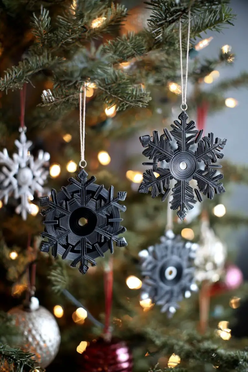 The circular shape of records naturally lends itself to snowflake designs, and the vinyl material is surprisingly durable.