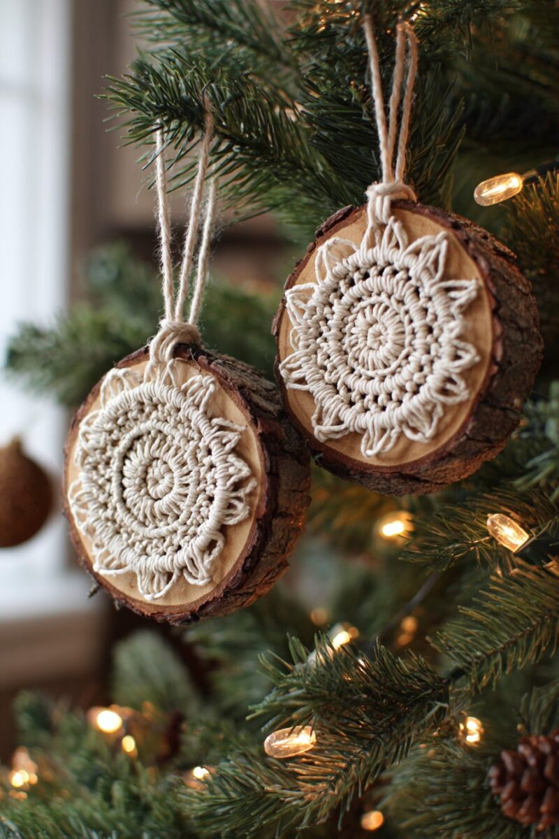 Macrame and Wood Slice Combo Ornaments