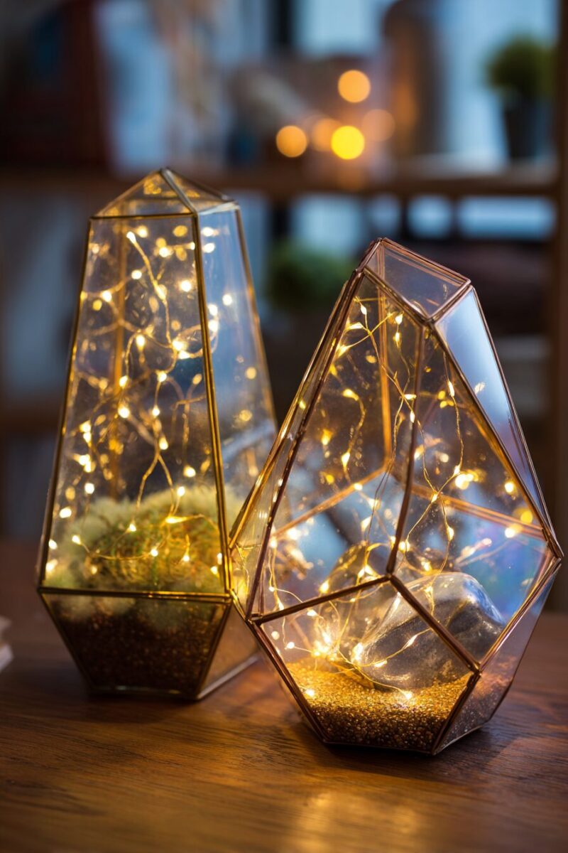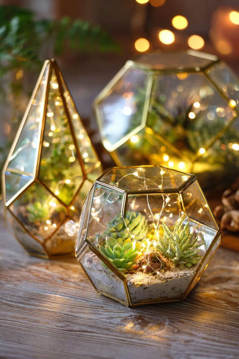 Geometric Glass Terrariums with LED Fairy Lights