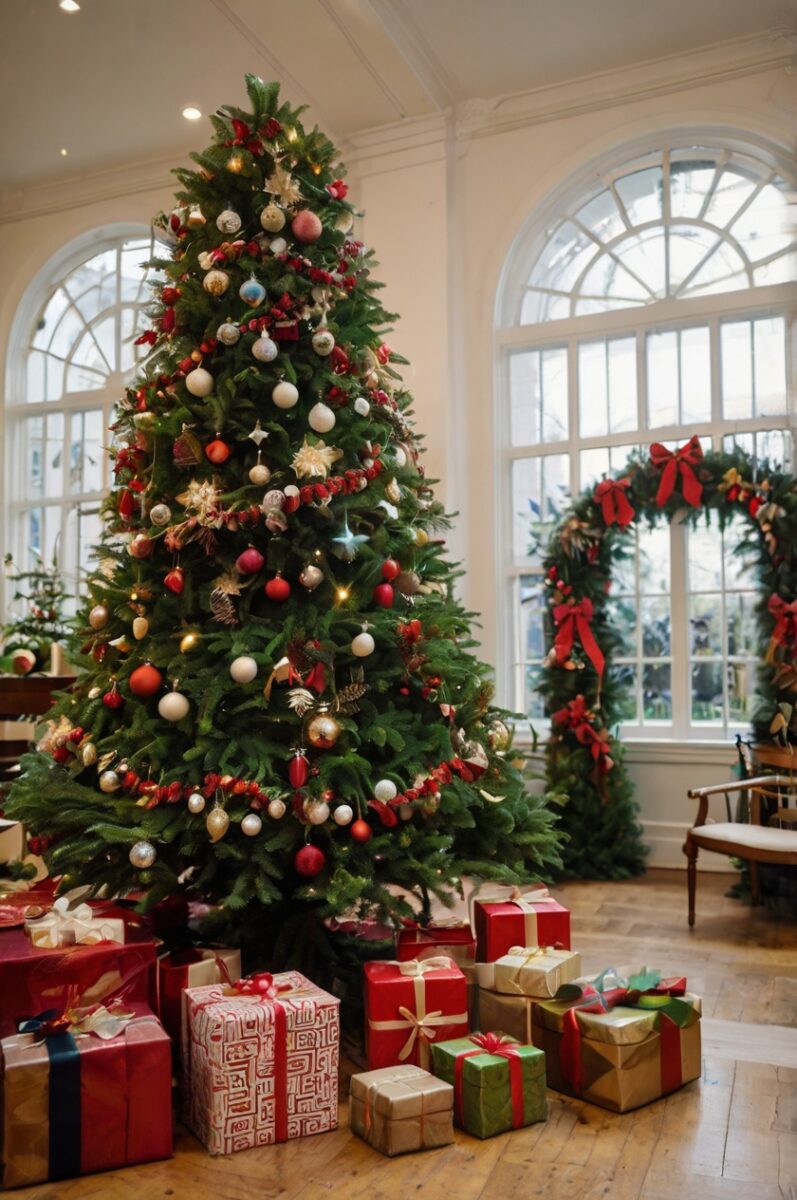Set up a large digital display or projection system that creates a virtual Christmas tree responsive to guest interaction.