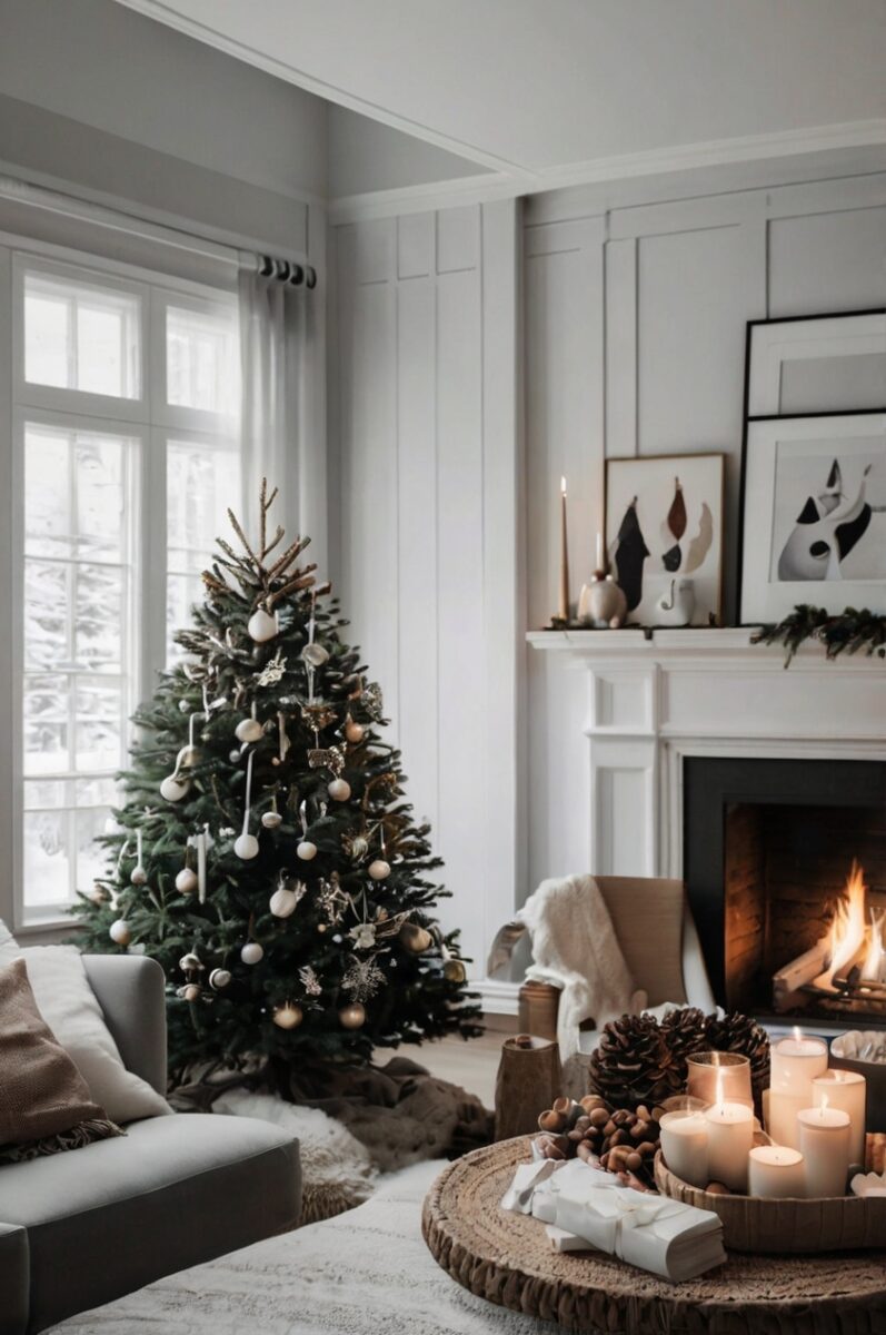 This approach focuses on natural materials, neutral colors, and simple elegance that creates a calming yet festive atmosphere.