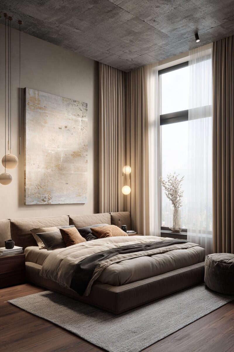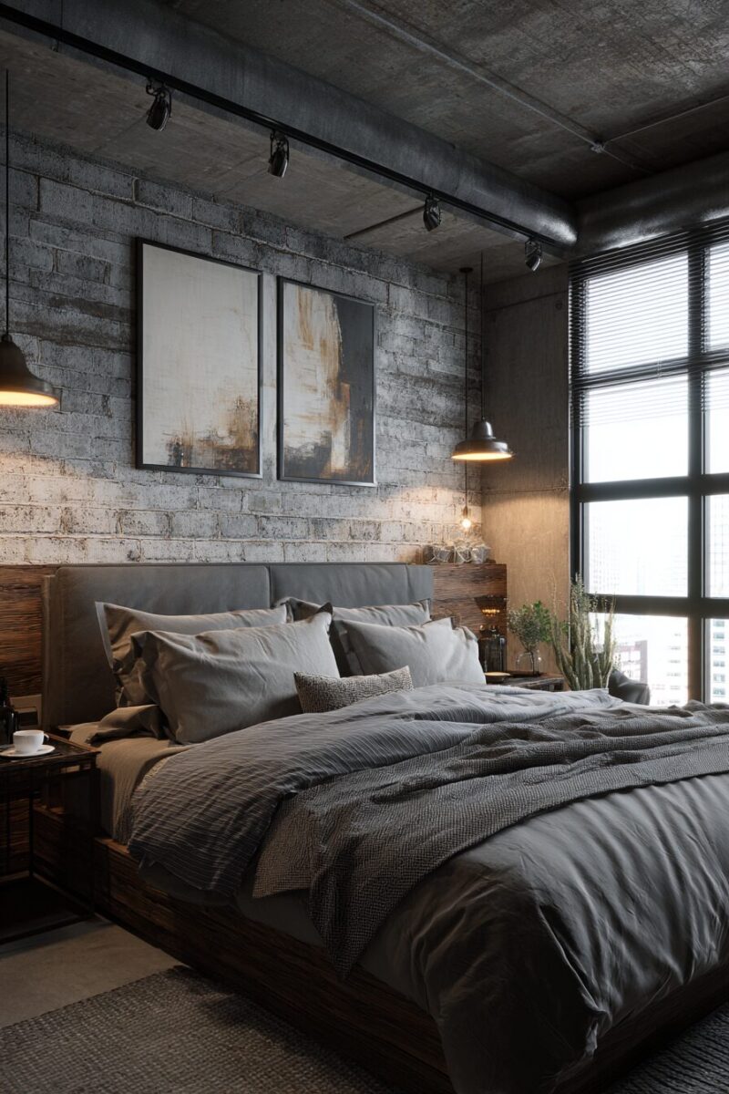 Raw materials and sleek design elements combine to create a bedroom that feels both edgy and sophisticated, perfect for the urban dweller.