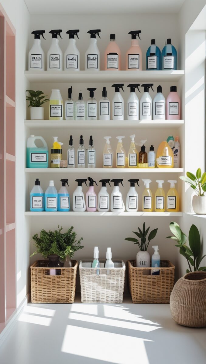 Professional organizers always consolidate cleaning products because multiples create visual chaos and waste.