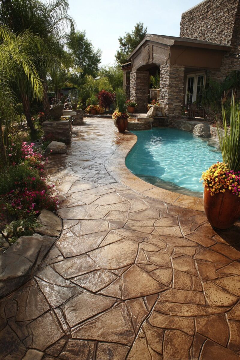 The versatility of stamped overlays means you can match the design to your home’s architectural style, whether it’s rustic, modern, or traditional.