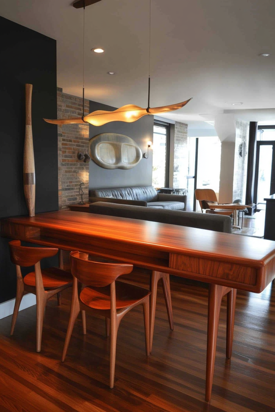Incorporate pieces like ceramic table lamps with atomic starburst patterns, abstract wood sculptures, or a colorful glass vase.