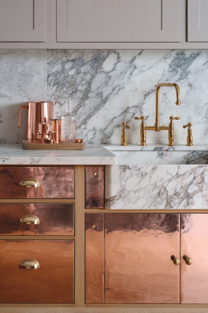 This warm, luxurious metal brings an instant dose of sophistication to any kitchen while creating a stunning focal point that never goes out of style.