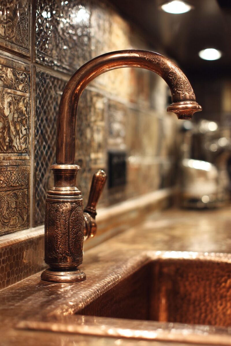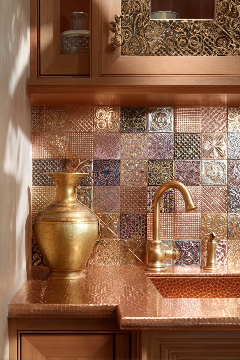 Copper mosaic patterns transform your backsplash into a genuine work of art.