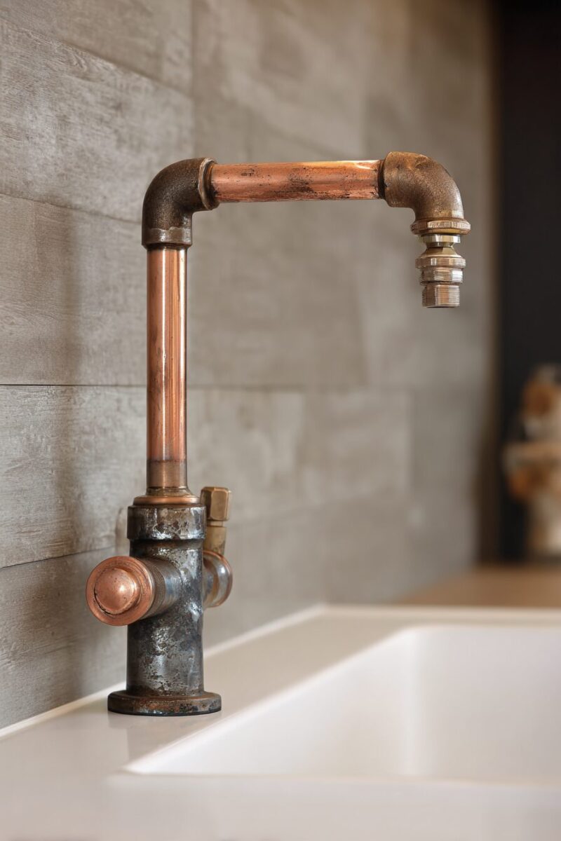 Industrial copper pipe design brings urban loft appeal and functional beauty to your kitchen space.