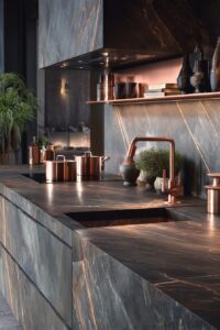 The combination of copper with stone, glass, or ceramic creates visual complexity that’s simply stunning.