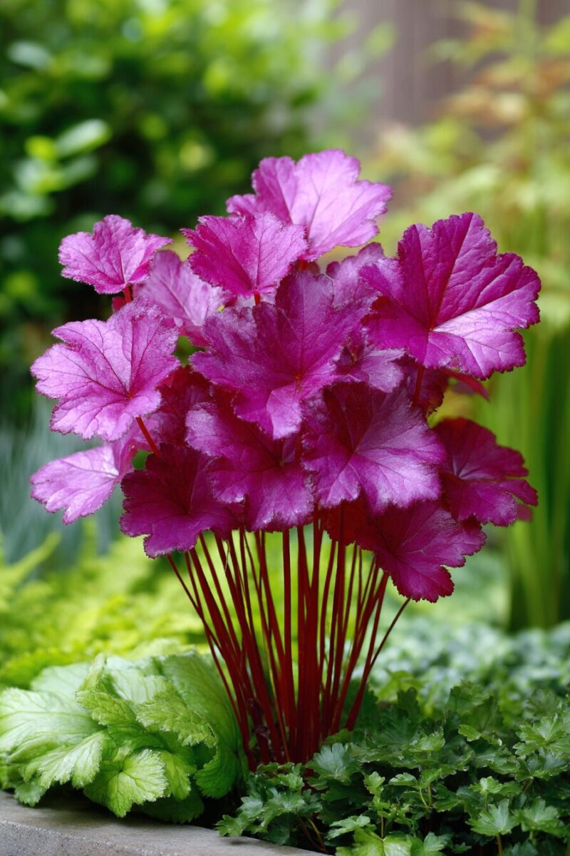 Imagine the deep purple of ripe blackberries coated with a layer of morning frost—this is the magical color effect achieved by ‘Blackberry Ice’ Heuchera.