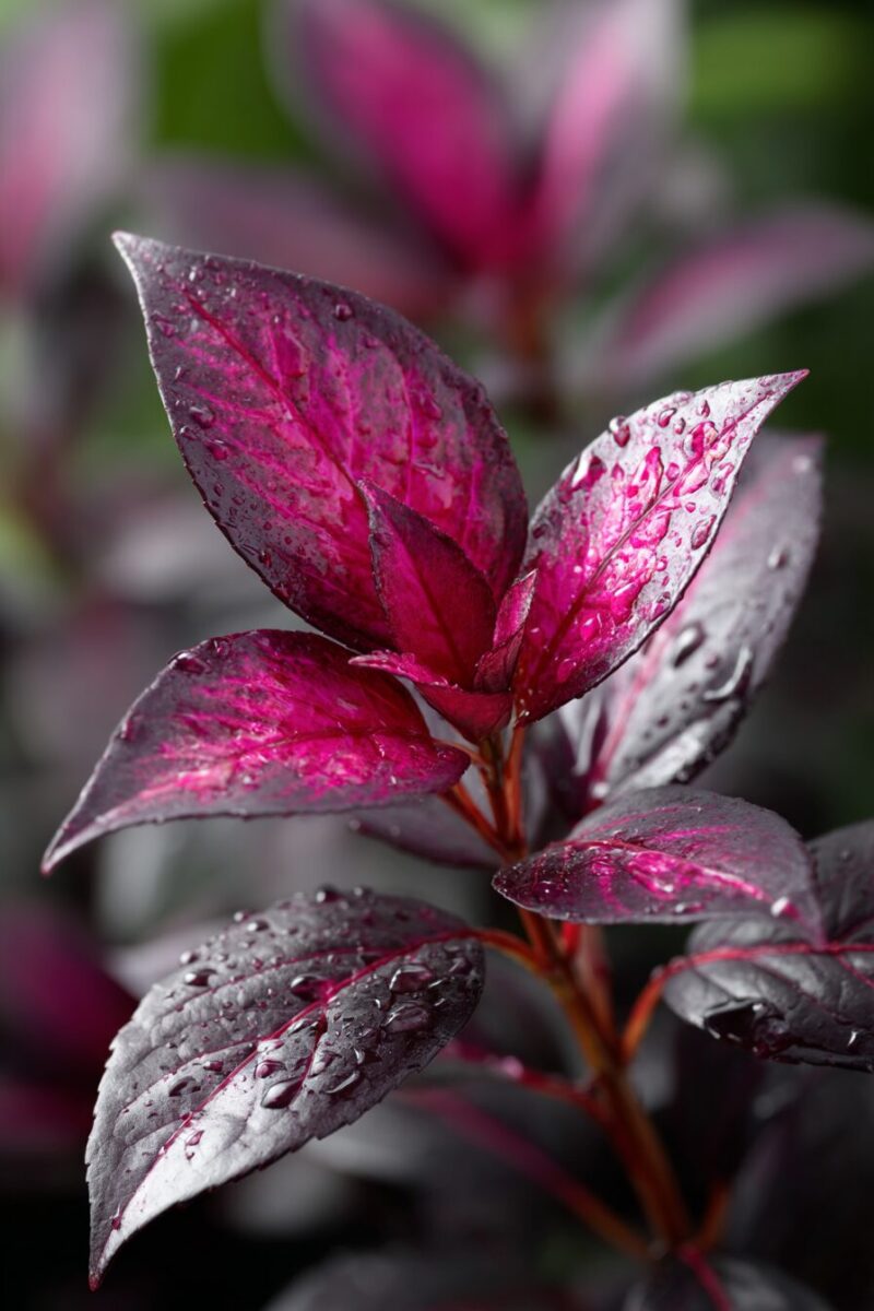 ‘Midnight Rose’ – Dramatic Dark Leaves Splashed With Hot Pink Speckles