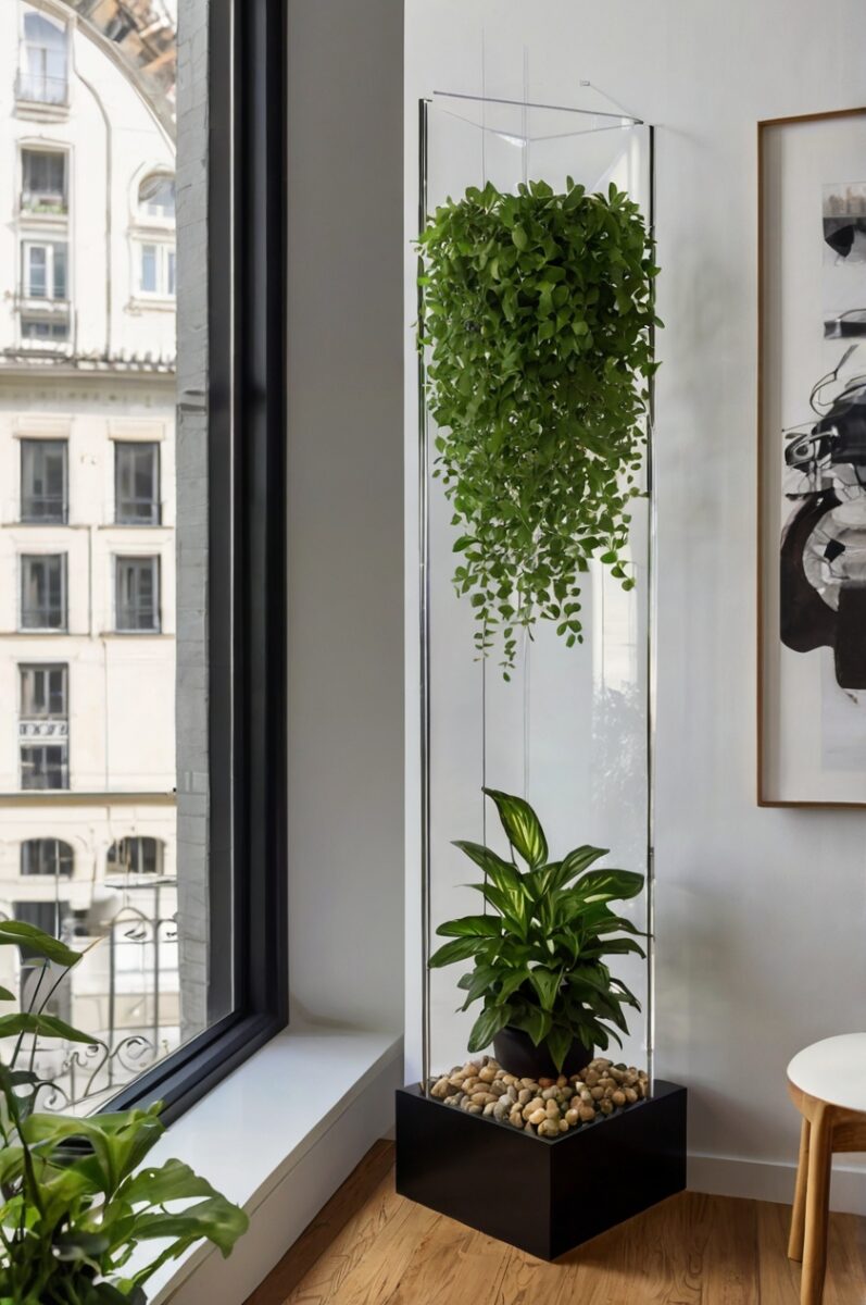 Transparent acrylic plant stands create the illusion that your plants are floating in mid-air, adding a touch of modern magic to any corner space.
