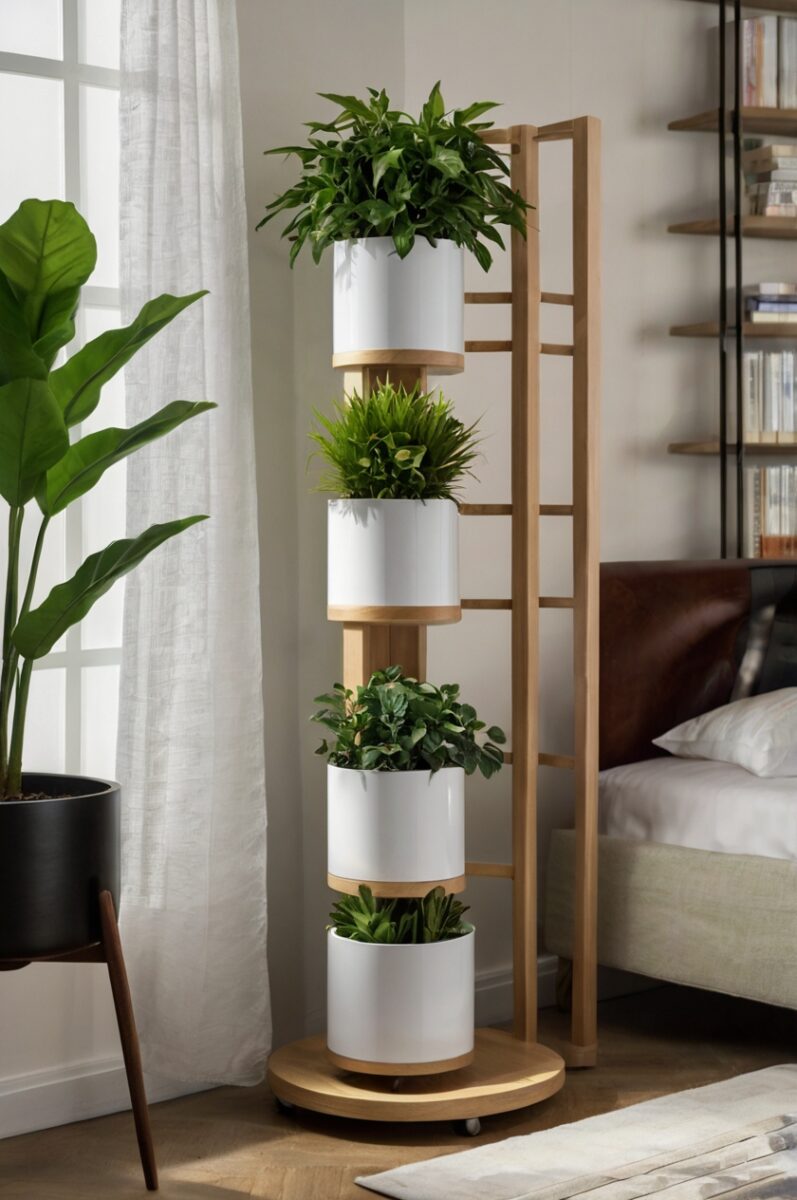 High-tech plant stands equipped with sensors, automated watering, and smartphone connectivity bring your corner garden into the digital age with style and efficiency.
