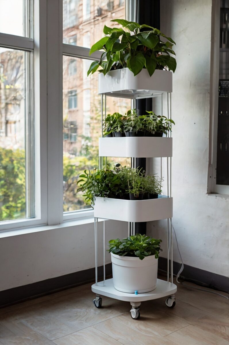 Smart Corner Stands with Self-Watering Systems