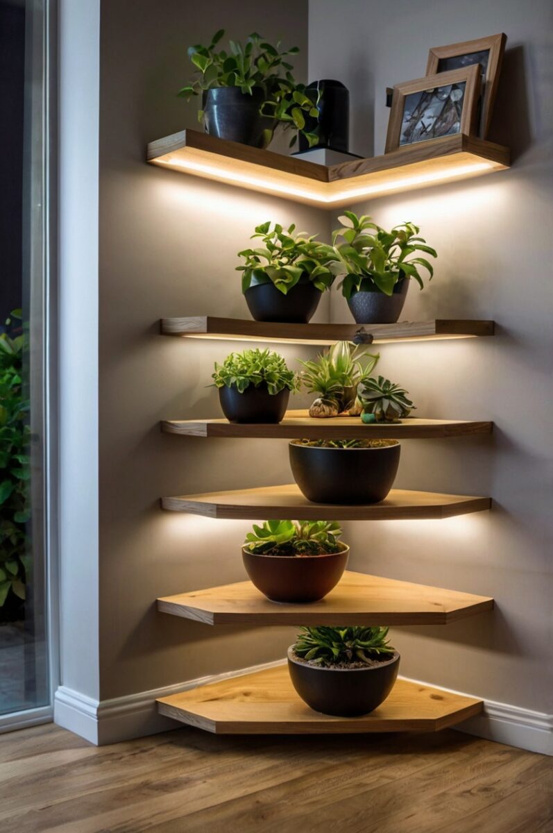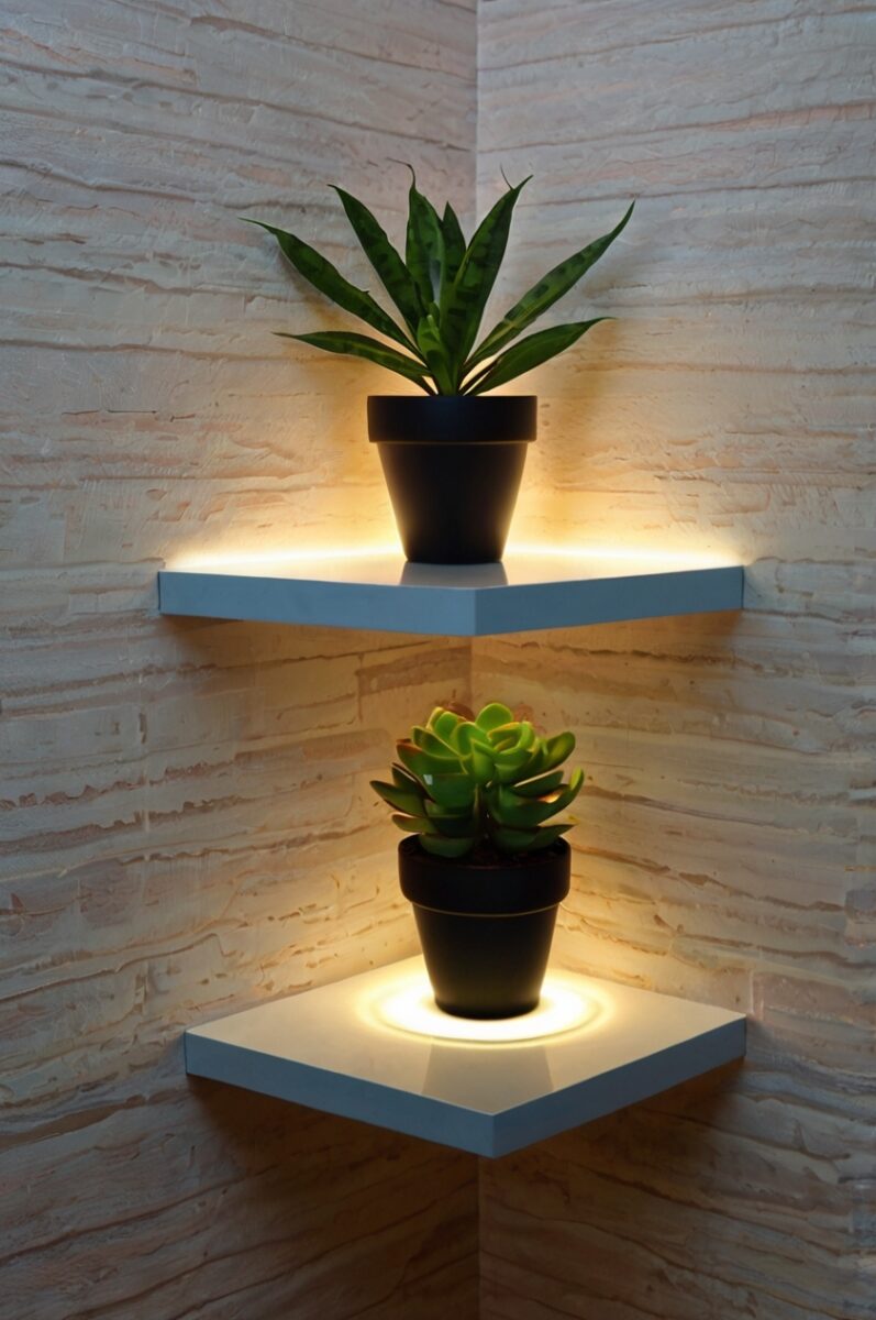 🏡 Start Creating FREE →Floating Corner Shelves with LED Strip Magic