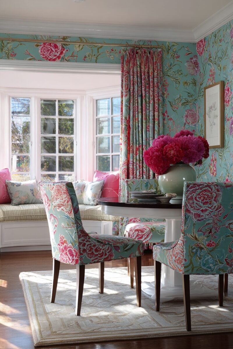 Floral patterns bring instant cottage charm and feminine softness that transforms your dining room into a garden-inspired haven.
