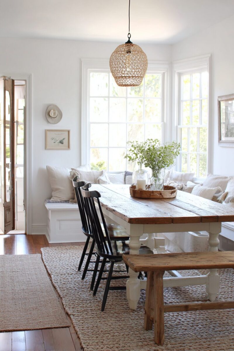 Natural wood elements bring warmth, texture, and organic beauty that forms the foundation of authentic cottage dining room style.