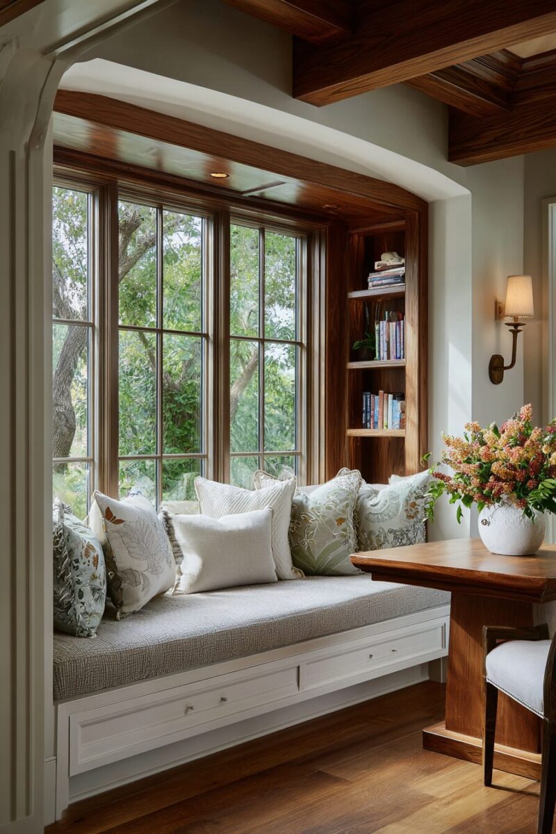 Seasonal decorating becomes easy with a window seat – swap cushion covers, add holiday pillows, or display seasonal flowers on the windowsill.