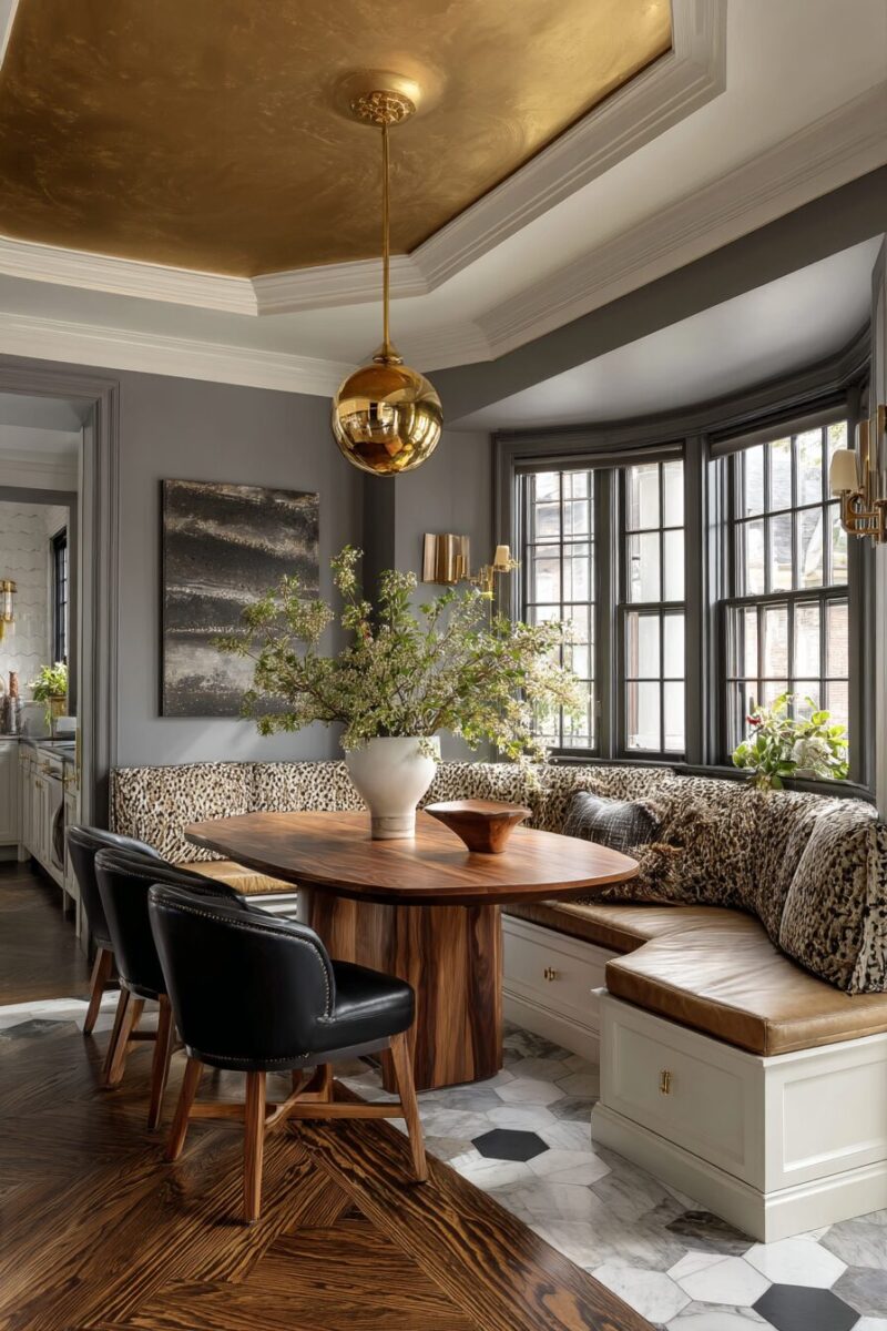 Built-in banquette seating maximizes space efficiency while creating that snug, enveloping feeling that encourages guests to settle in and stay awhile.
