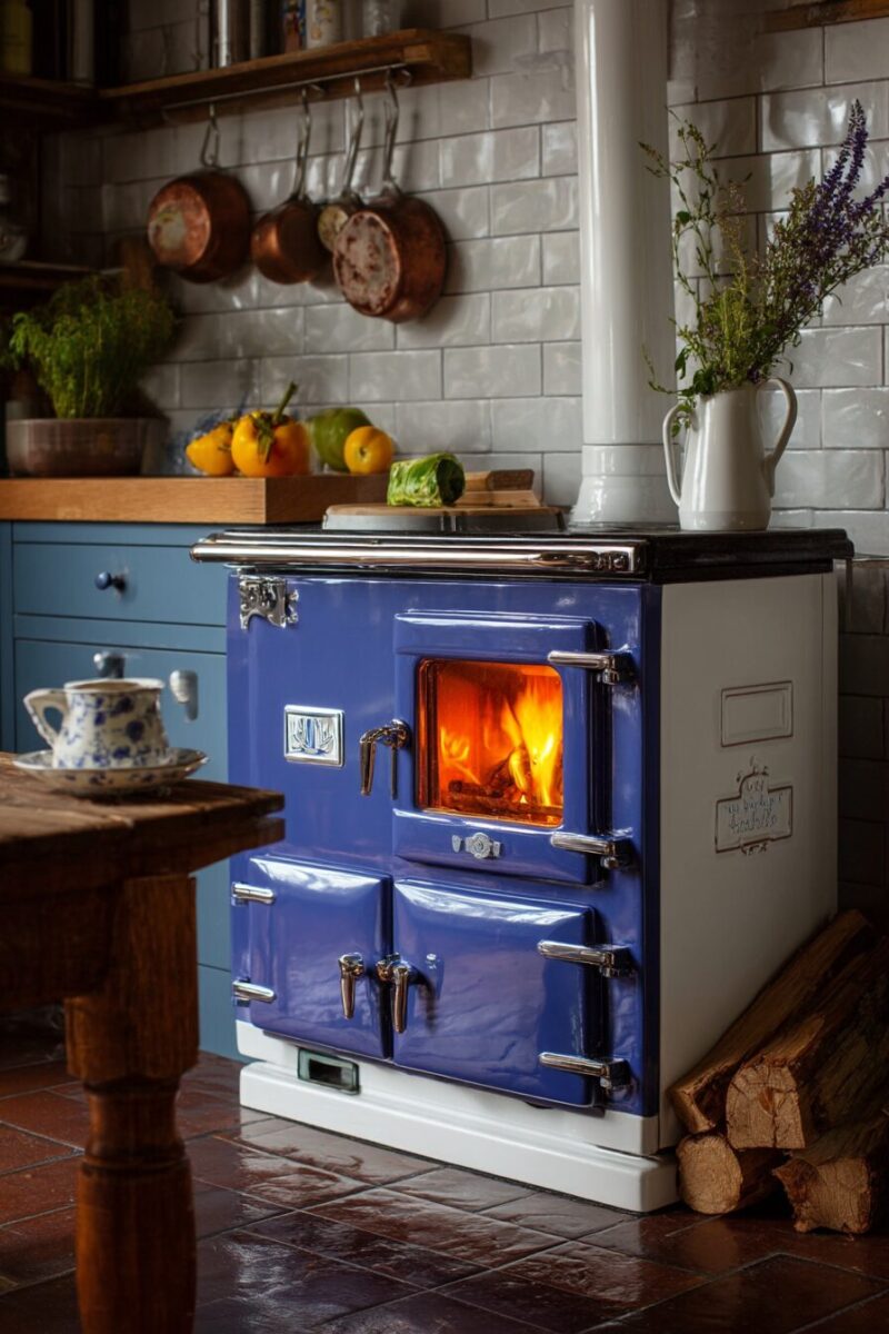 For authentic cottage charm, consider a classic cast iron wood stove in deep black or rich enamel colors, its substantial presence immediately establishing your kitchen as a place of nurturing and comfort.