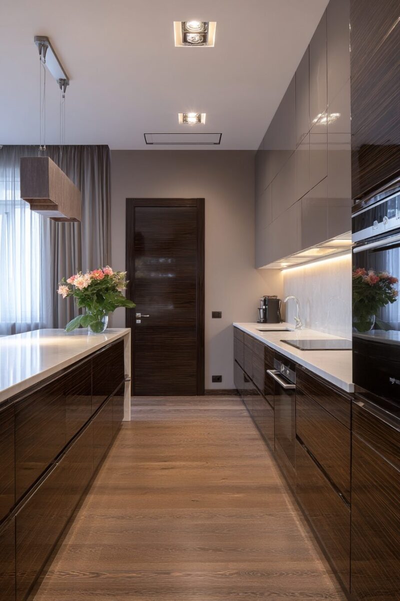 For maximum impact, consider cross-beams that create a subtle coffered effect, drawing the eye upward and making even modest-sized kitchens feel more expansive and interesting.