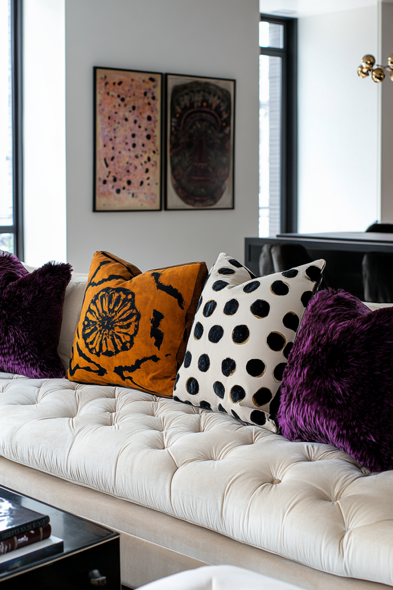 Mix and match fabrics like faux fur, velvet, and cotton for a sensory experience that screams comfort.