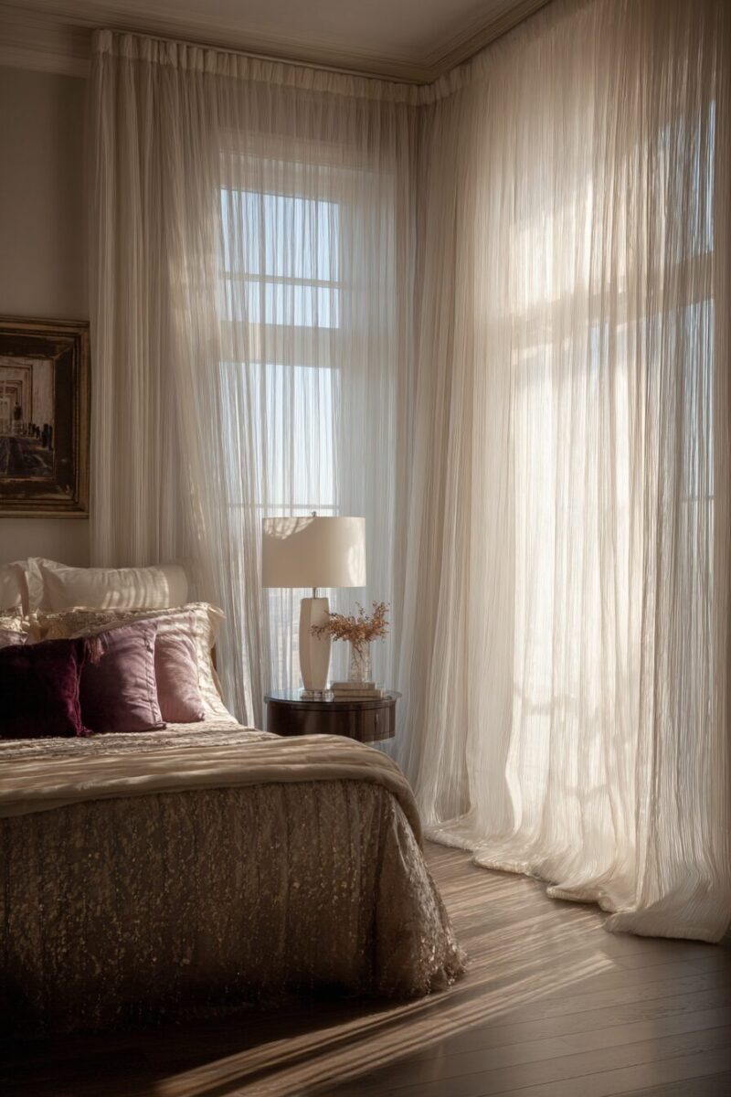 For truly dreamy bedroom vibes, consider doubled-up sheers with extra width, creating cloudlike volumes of fabric that move gracefully with the slightest breeze.
