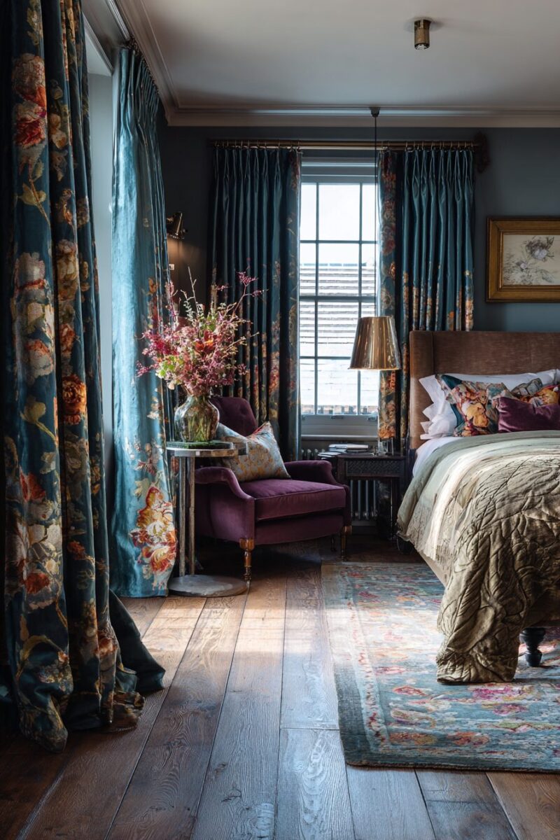 Pattern-forward curtains make seasonal bedroom refreshes incredibly easy—simply switching from bold florals to subdued stripes can completely transform your room’s mood without changing any furniture.