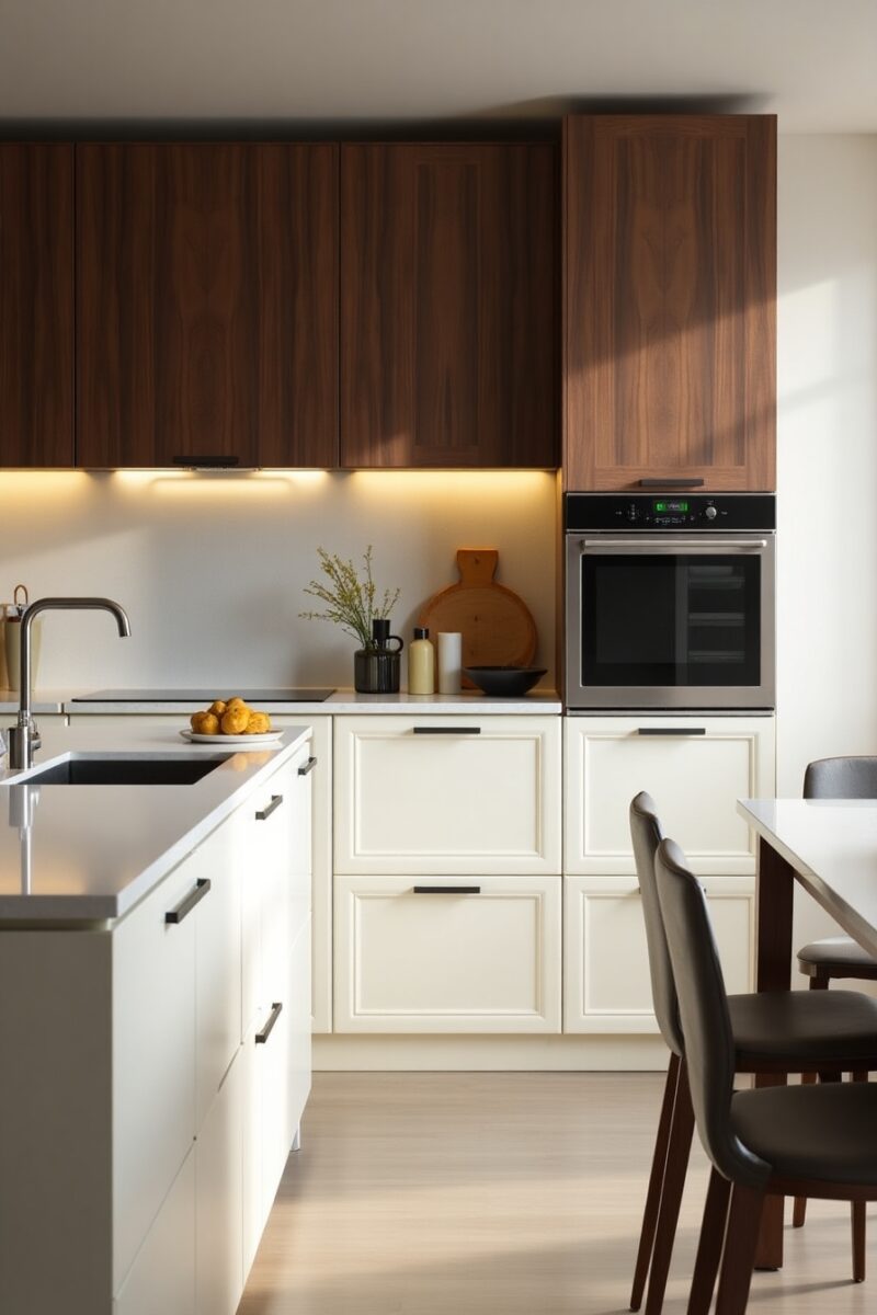 Scandinavian Minimalist Kitchen with Walnut Cabinets