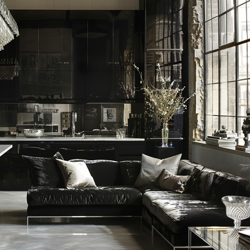 Glossy Black Kitchen Cabinets