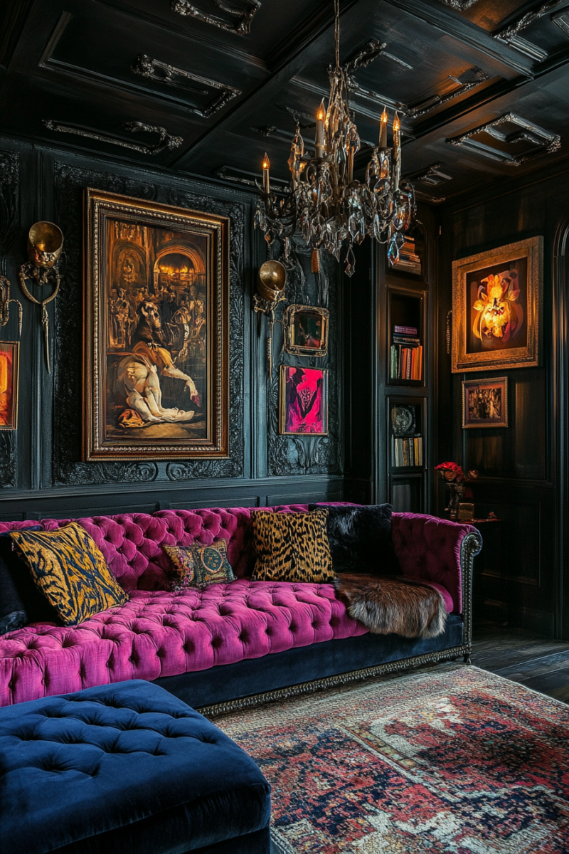 Proper lighting is key to creating the dark maximalist atmosphere.