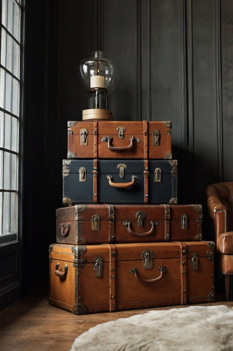 Hunt for authentic steamer trunks with brass corner guards, leather straps, and travel stickers that tell stories of international scholarly exchanges.