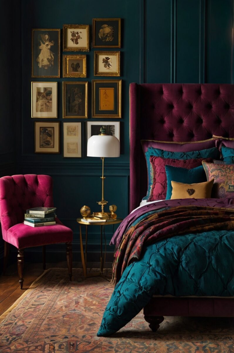 The interplay of different jewel tones creates a sophisticated color story that’s both cohesive and visually interesting.