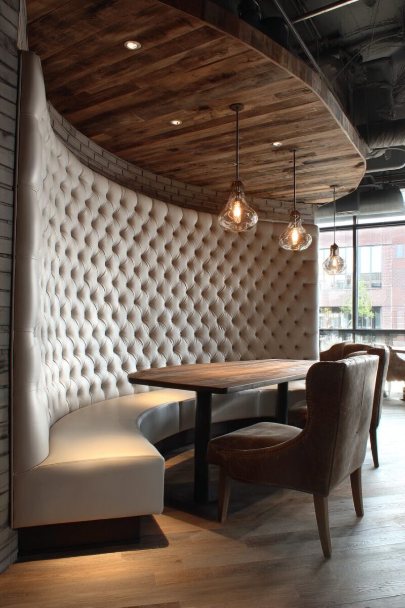 The elegant sophistication of curved booth seating elevates any dining experience.