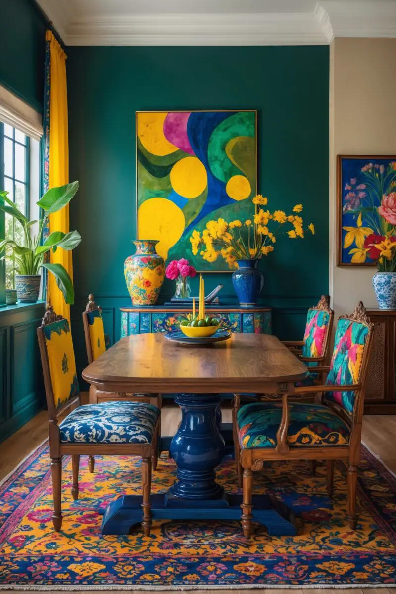 Imagine walking into a dining room with walls painted in a lush emerald green.