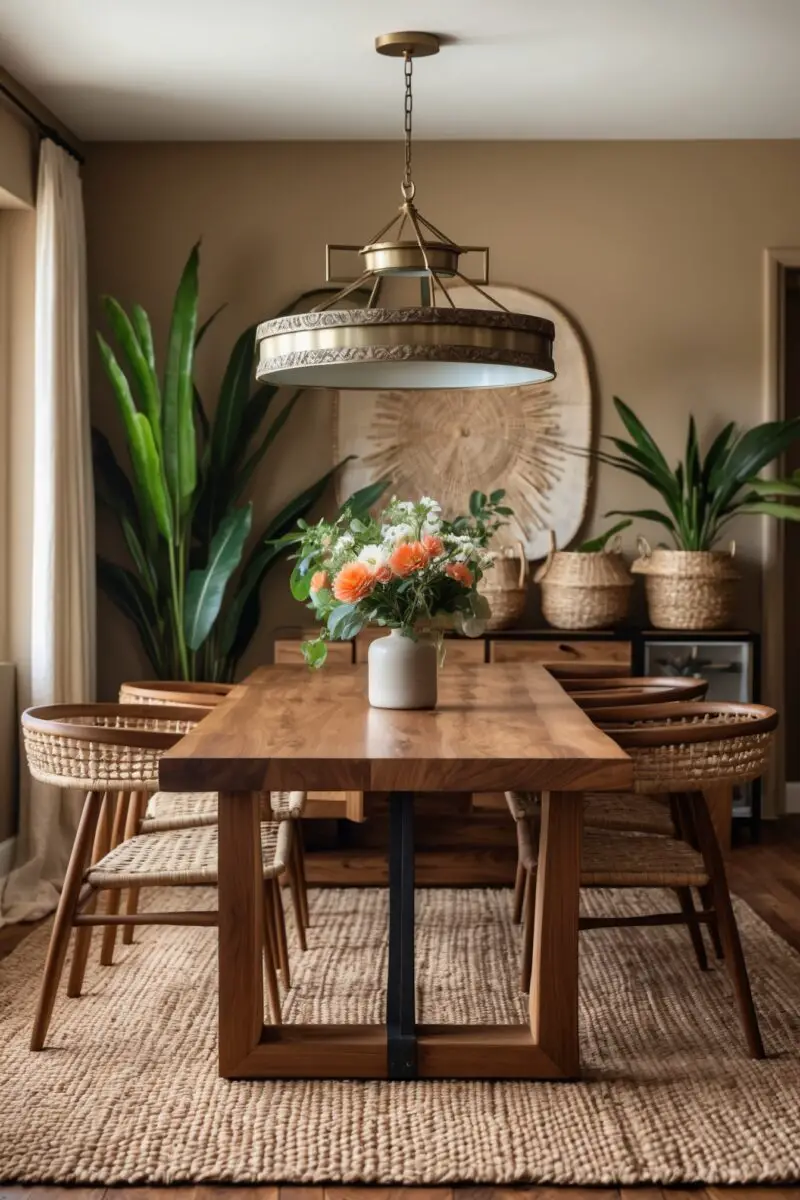 You don’t have to go fully rustic—a sleek walnut table with clean lines works beautifully in modern spaces.