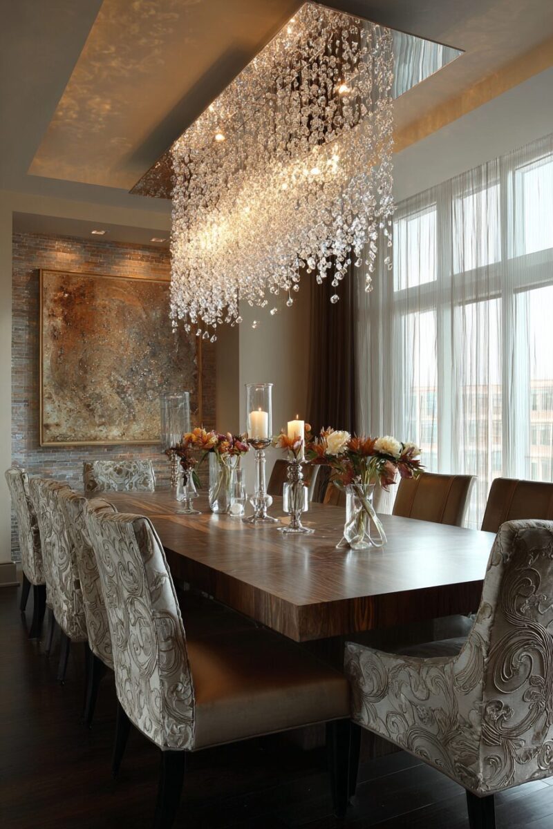 Crystal light fixtures transform any dining room into a space that feels like it belongs in a luxury hotel or upscale restaurant.
