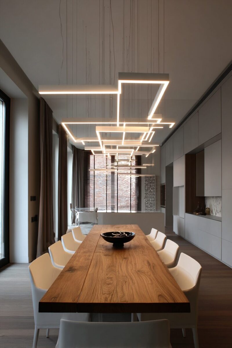 Modern linear suspensions come in countless configurations – from simple single bars to complex geometric arrangements that look like modern art installations.