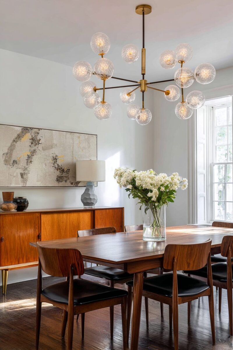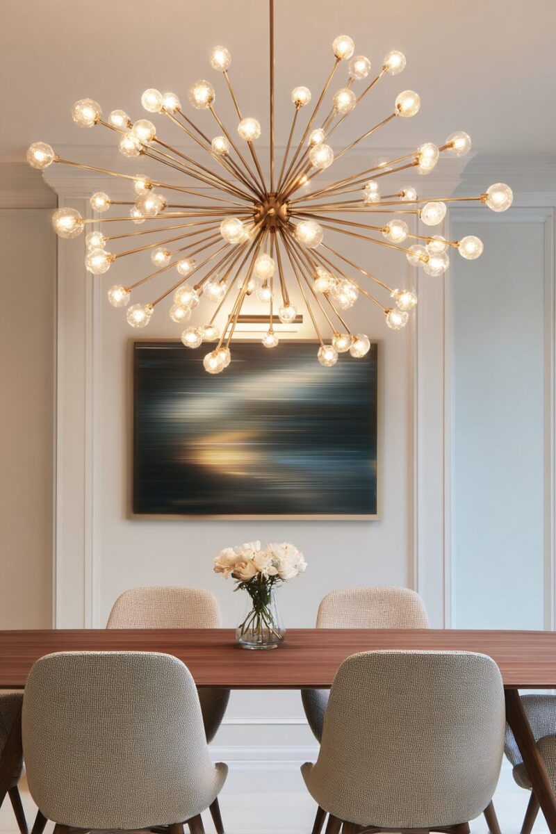 Pair Sputnik lighting with other mid-century modern elements like tulip chairs, teak furniture, or geometric artwork to create a cohesive design theme.