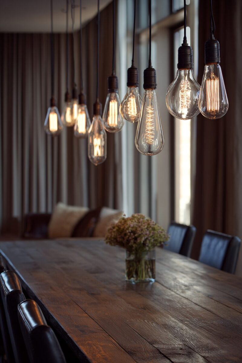 Edison bulb fixtures celebrate the raw beauty of exposed filaments and vintage-inspired design that adds character to any dining space.